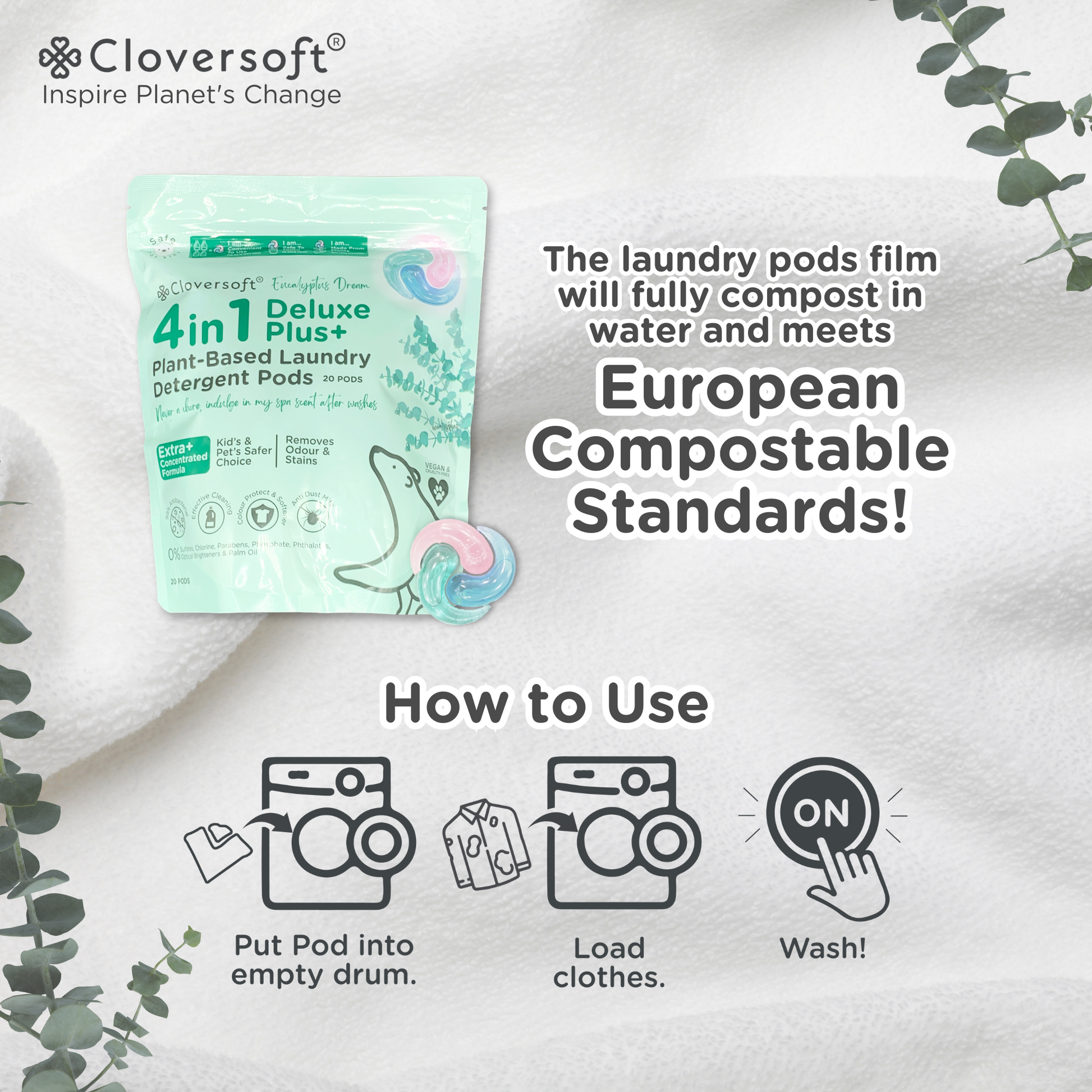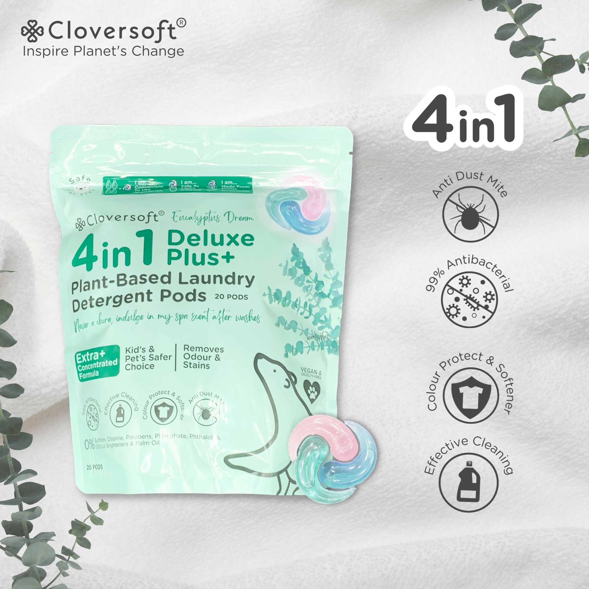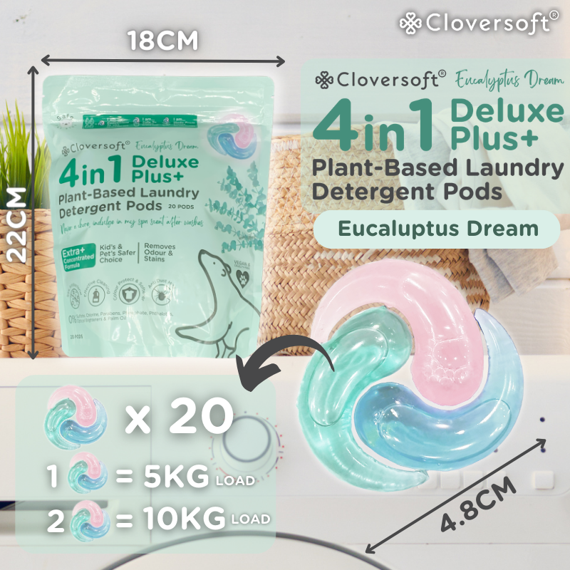 Cloversoft 4 in 1 Deluxe Plus+ Laundry Capsule (Eucalyptus Dreams) 20 Pods