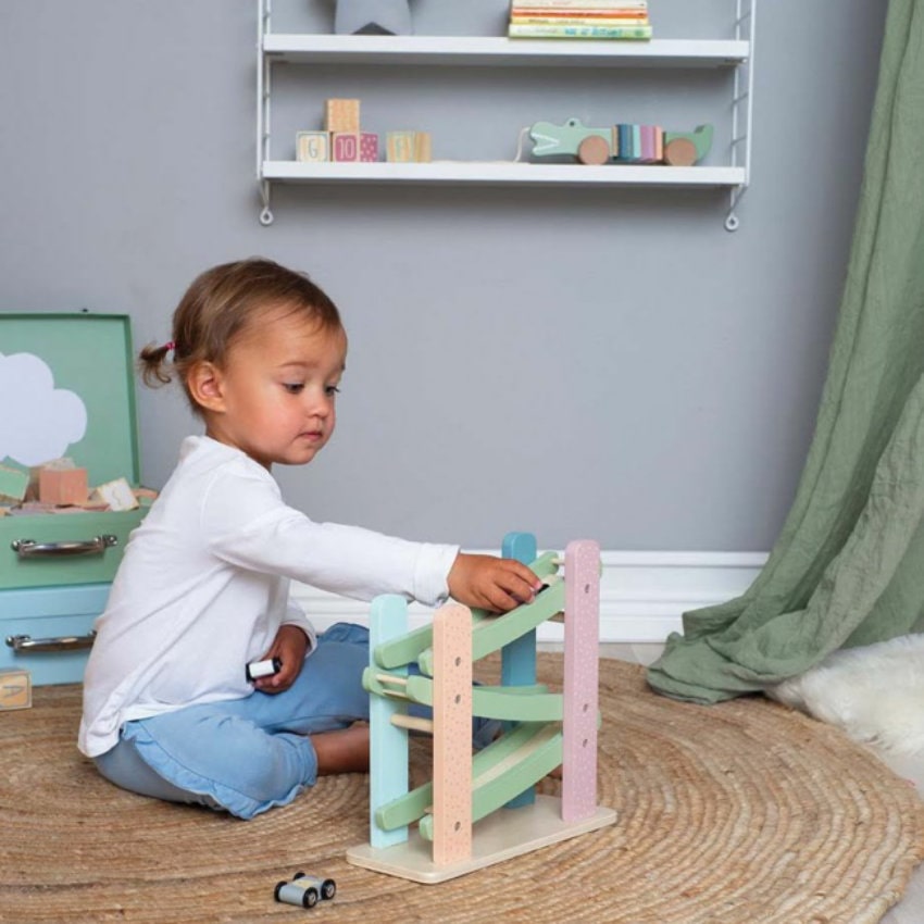 The Jabadabado Car Roller is crafted from sturdy wood, ensuring durability and lasting enjoyment. Its compact size makes it ideal for any space, whether it's on a bedroom floor or a playroom table. Perfect for kids who love dynamic and interactive toys, this race track promises to keep them engaged and amused for hours. Let the races begin and enjoy the joyous moments this simple yet captivating toy brings to your home.