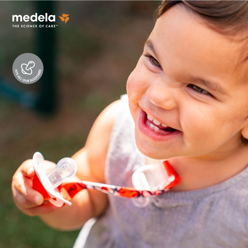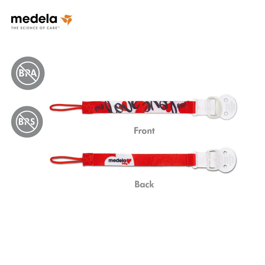 Universal soother holder, fitting all Medela Baby soothers and most other soothers. Safe material and easy to use with “open with one hand” clip. Made without BPA and BPS.