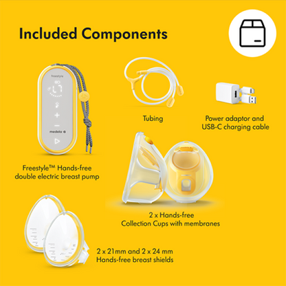 • Hands-Free: Medela Freestyle™ Hands-Free gives you the flexibility to pump anytime, anywhere. The rechargeable pocket-sized pump and wearable collection cups keep your hands free for multi-tasking.
