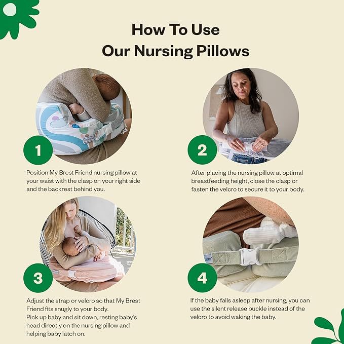 •ERGONOMIC DESIGN - This baby nursing pillow for breastfeeding has a secure wrap-around design, supportive backrest and adjustable silent-release straps. It secures to the body and helps to promote an ideal position for latch & comfort for mom & baby.