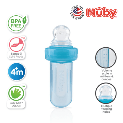 Durable silicone feeding bulb, squeezable tinted silicone, safe and easy self-feeding and protective cover keeps spout clean
