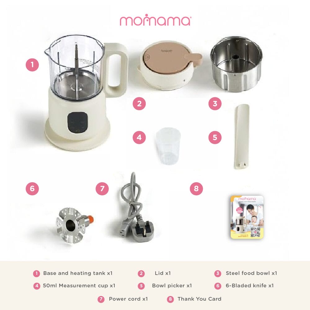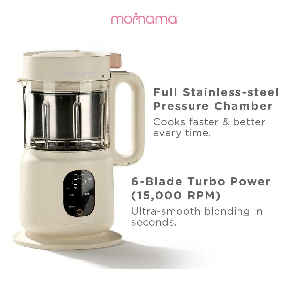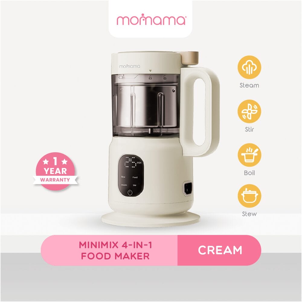 Your all-in-one mealtime companion.Make healthy, homemade meals for your little one with ease using the Momama Minimix 4-in-1 Foodmaker. Designed to support busy parents, this compact device combines stewing, boiling, steaming, and stirring functions—perfect for preparing nutritious baby food from start to finish.