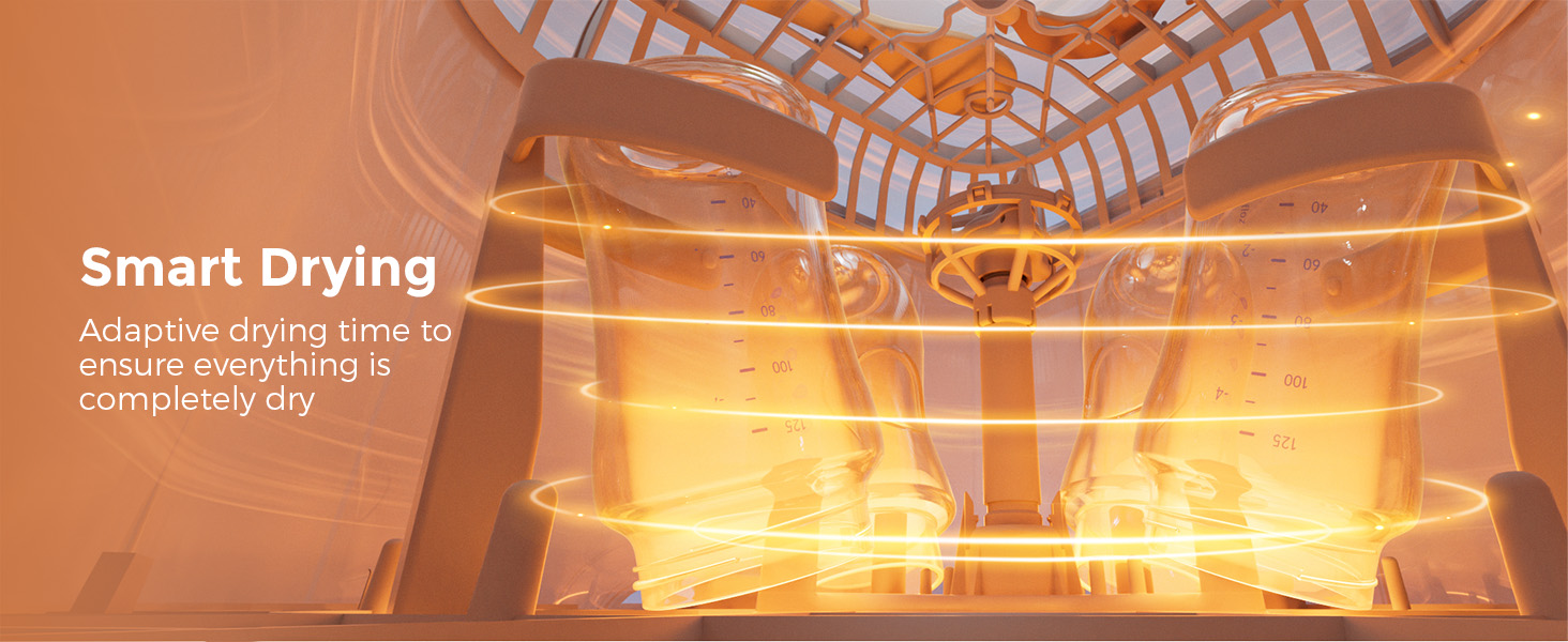 You can choose from four modesโRapid Wash, Normal Wash, Sterilize + Dry, and Storageโand customize the bottle washer's settings to fit your needs. The Rapid Wash mode cleans bottles in just 19 minutes, making it a convenient option for busy parents.