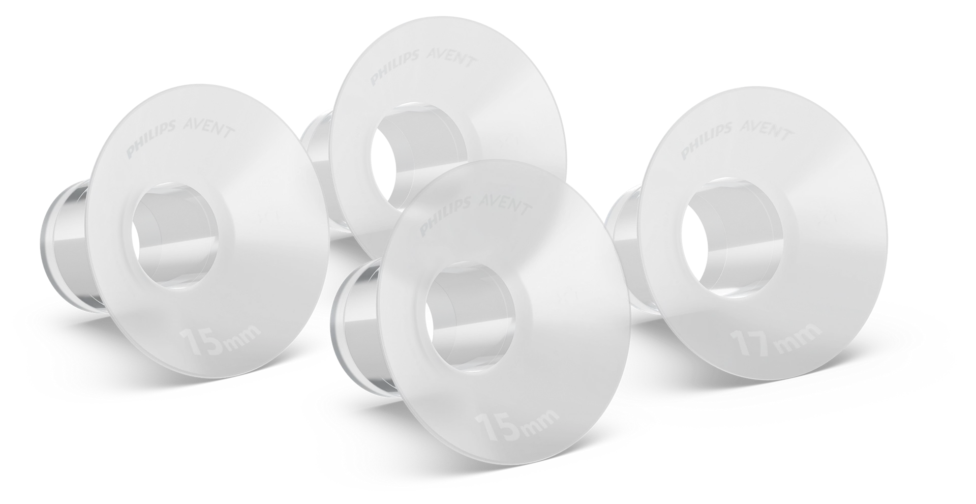 Because every mom is different, these 15 mm and 17 mm breast shield inserts for smaller nipple sizes provide a comfortable, secure fit. For use in combination with 21 mm breast shields and Philips Avent Hands-free Collection Cups.