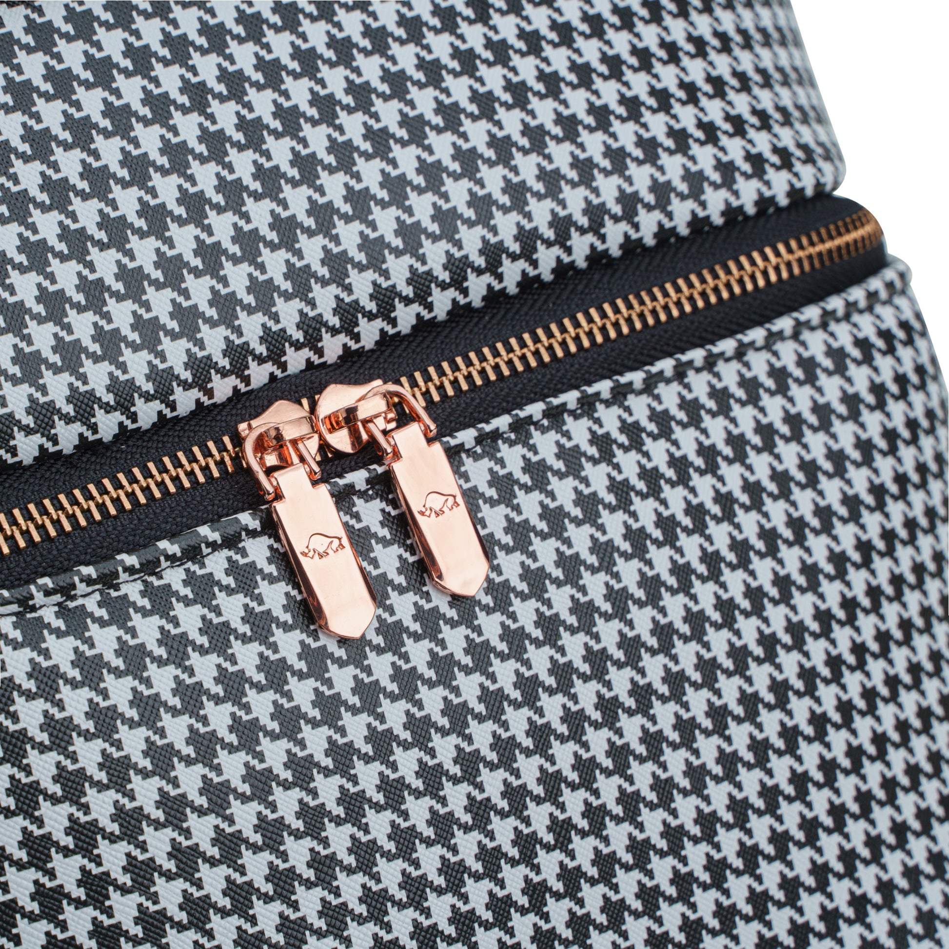 - Elegant design adorned with Rose Gold metal plate logo & zippers, adding a touch of luxury to your daily ensemble.