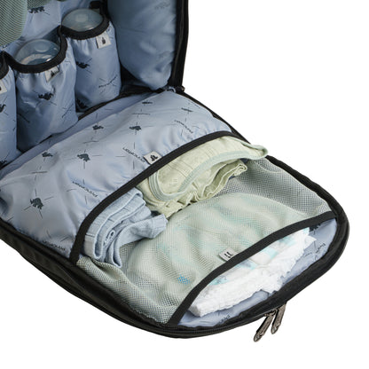Spacious Main Compartment: With a clamshell opening for easy access to contents like milk bottles and food containers. Includes an insulated storage divider for convenient placement of water/milk bottles and food jars.