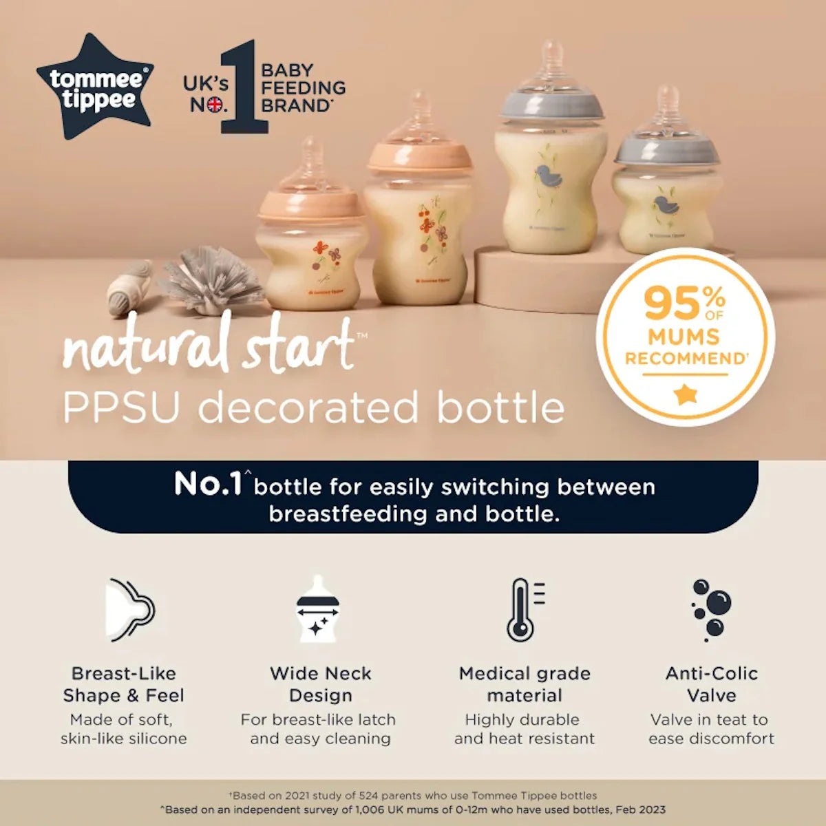 Tommee Tippee Natural Start PPSU Decorated Bottle Set Blue / Pink: