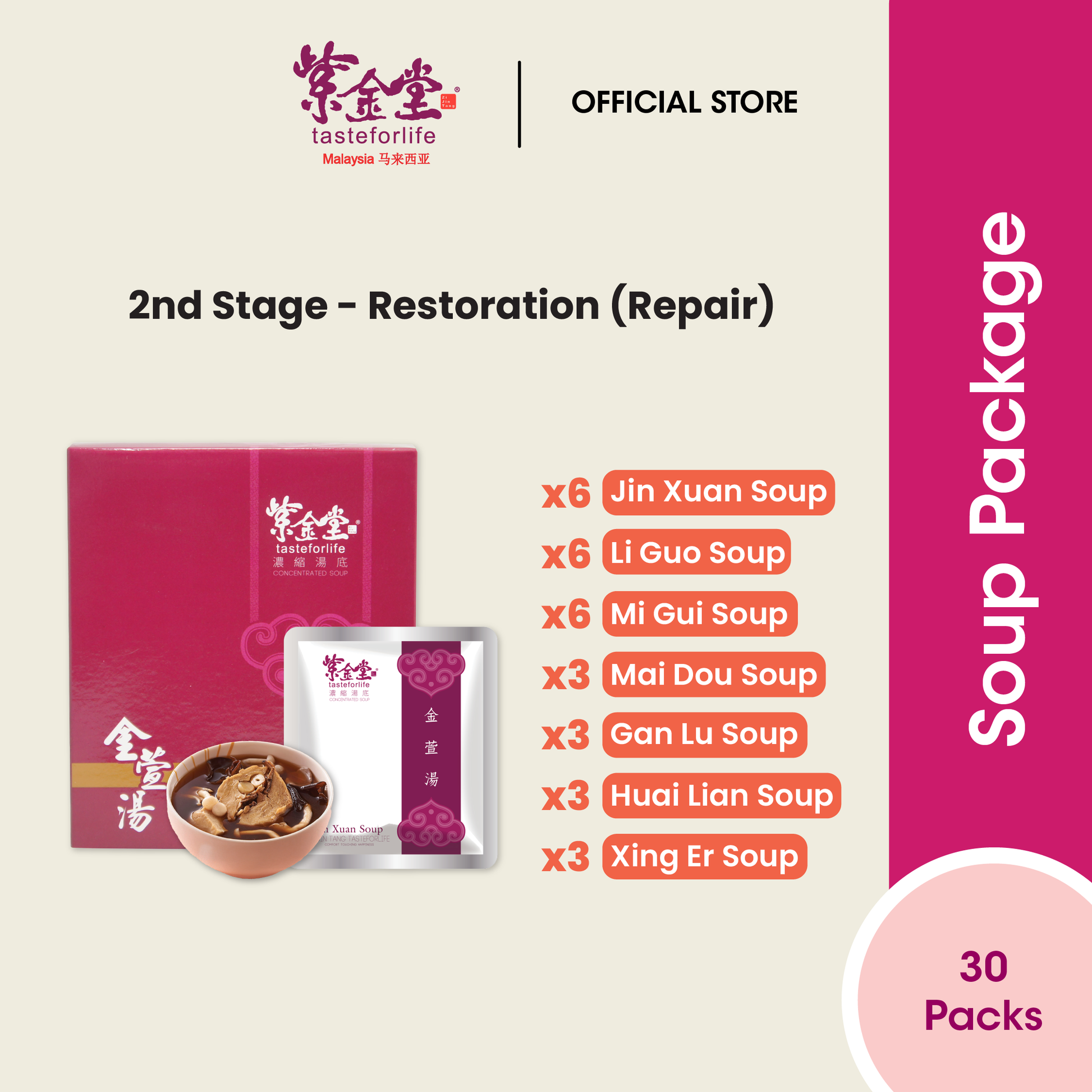 Zi Jin Tang Confinement Meal 10-Day Package (3 Meals) > 2nd stage - restoration (repair) 紫金堂 月子湯底第二階段 (修復)