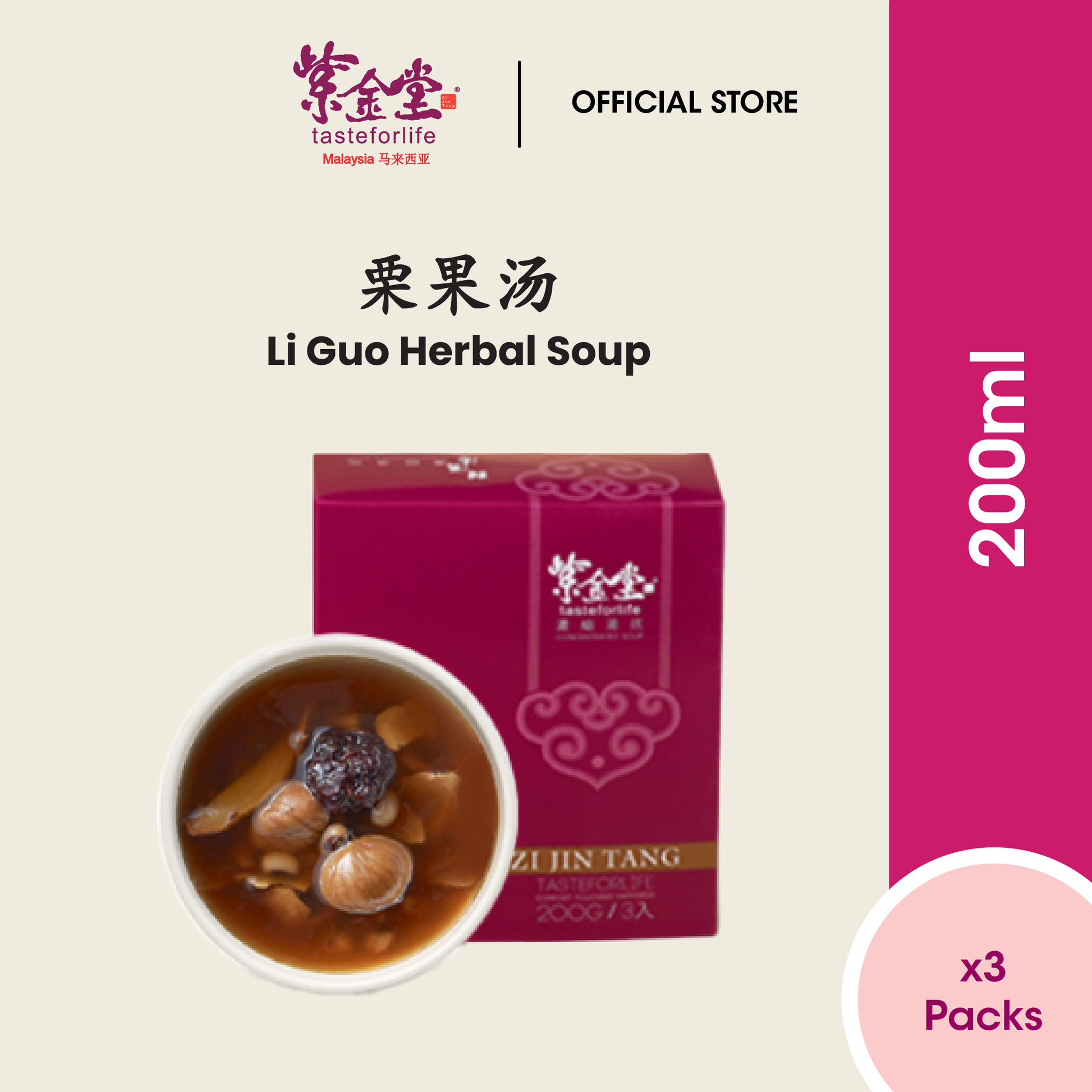 Zi Jin Tang Li Guo Soup 紫金堂栗果汤 (200ml x3packs)