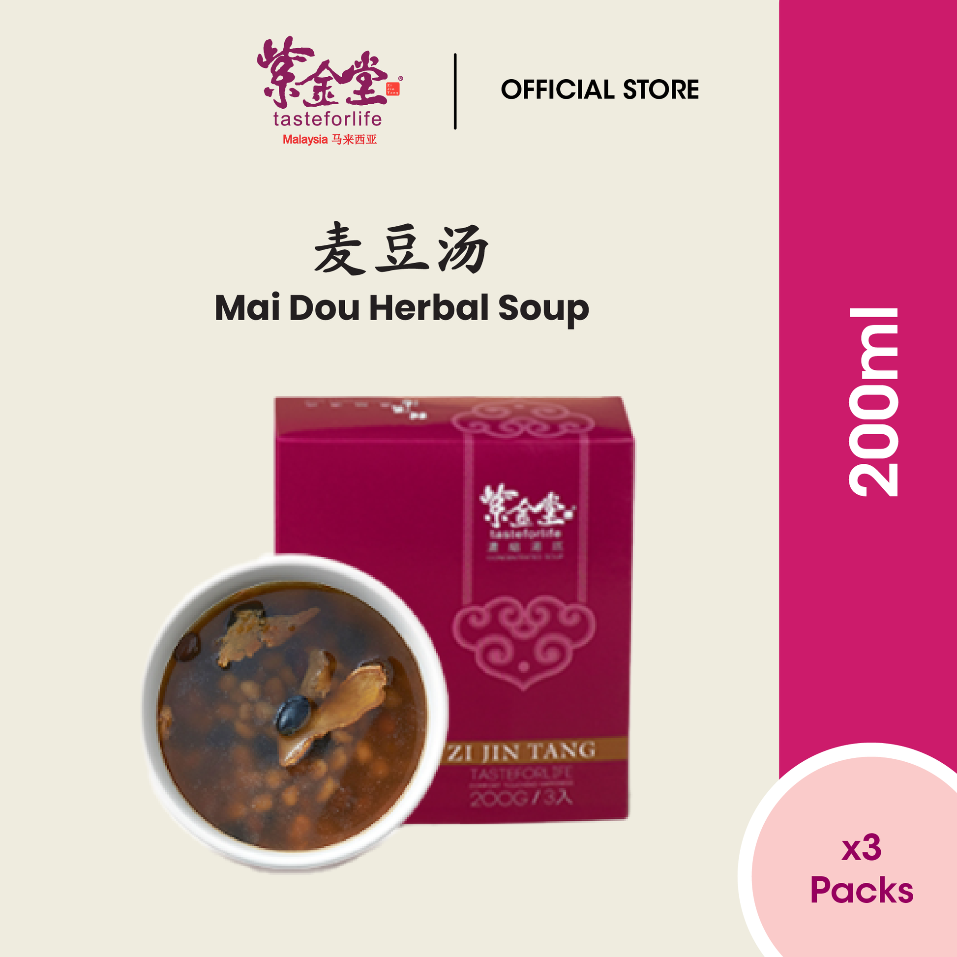 Zi Jin Tang Mai Dou Soup 紫金堂麦豆汤 (200ml x3packs)
